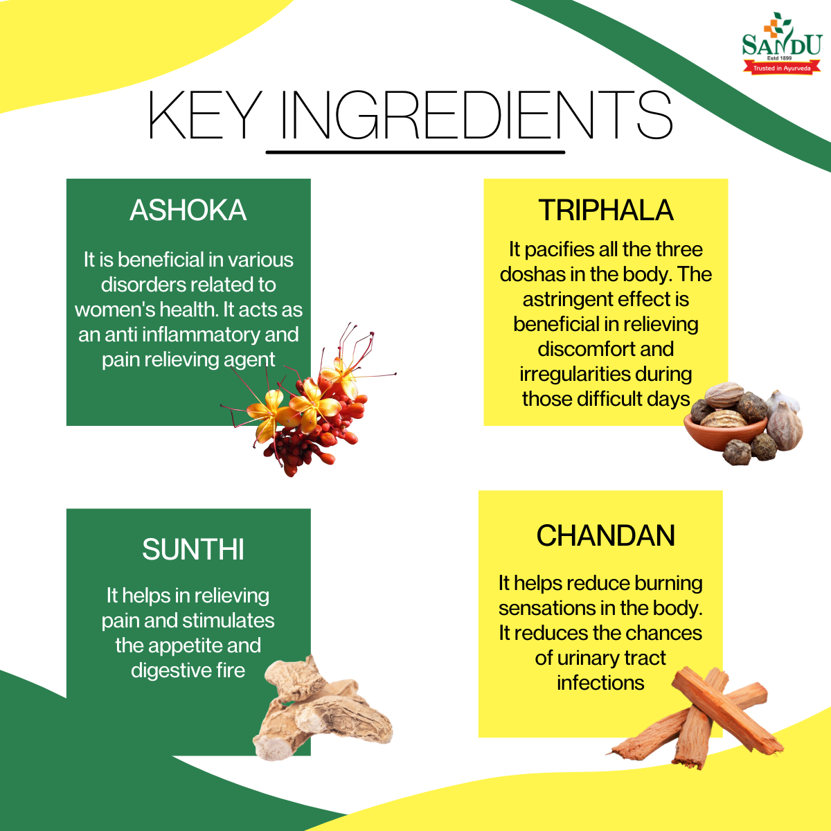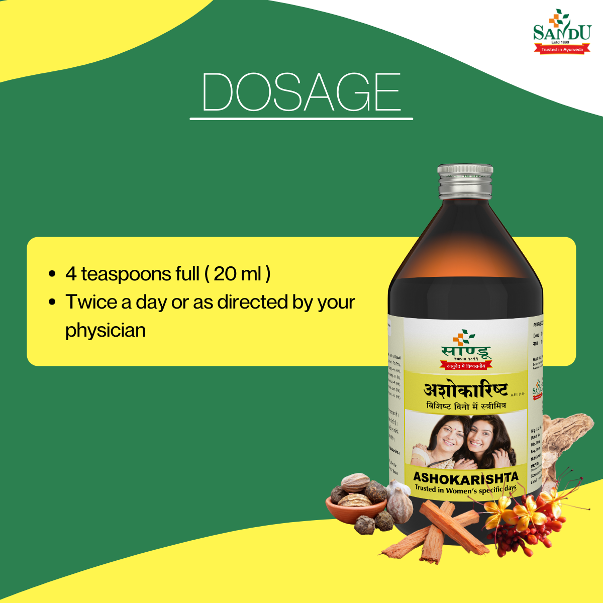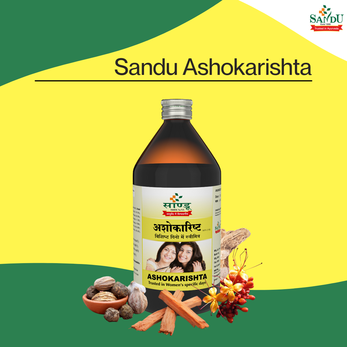 Sandu Ashokarishta is beneficial in general women complaints. It balances hormonal levels and regulates the functions of the ovary and uterus.