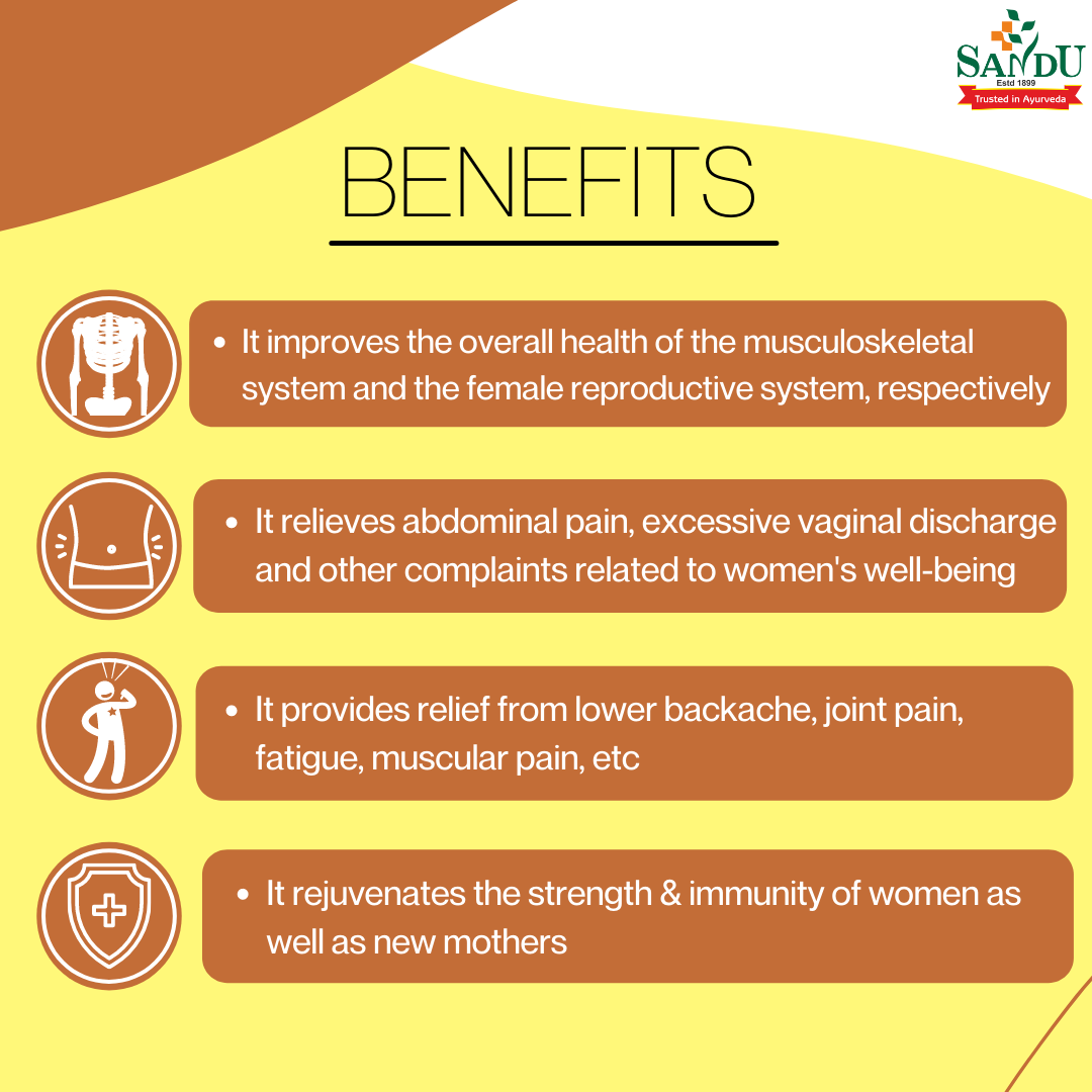 Dashamularishta is a traditional Ayurvedic formulation that offers various potential health benefits. The anti-inflammatory properties of certain herbs in Dashamularishta contribute to its potential benefits for joint health, providing relief in conditions associated with joint pain and inflammation. The formulation is a rasayana, which means it has rejuvenating properties. Hence helps in improving overall vitality, energy, and strength. It is often recommended for women during the postpartum period. It helps in toning the muscles of the uterus, promoting recovery after childbirth, and supporting overall postnatal health.