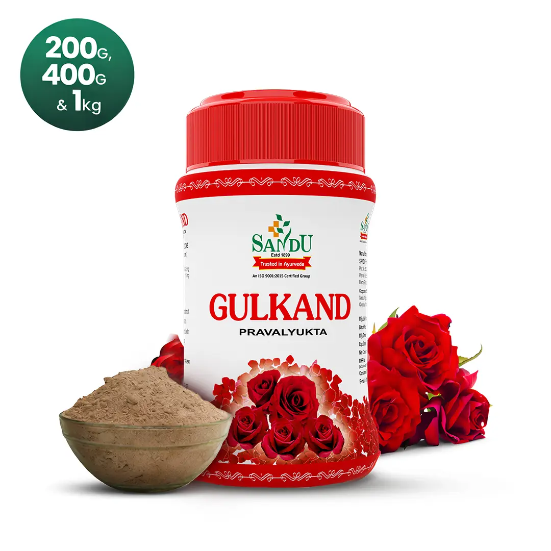 Sandu Gulkand is made with hand-picked rose petals from Pushkar. It has cooling properties and is used to balance the body’s heat, reducing symptoms like acidity and skin inflammation, making it a popular choice during the hot summer months. Gulkand is also considered beneficial for digestive health and treats acidity and constipation. According to Ayurveda Gulkand helps in detoxifying the body. The combination of rose petals and sugar is believed to aid in the elimination of toxins from the body. It is beneficial in women’s health. It is believed to have a cooling effect on the reproductive system.Praval Pishti is an ancient Ayurvedic ingredient well-known for its benefits in aiding digestion, eye disorders, cough, and heat-related problems.