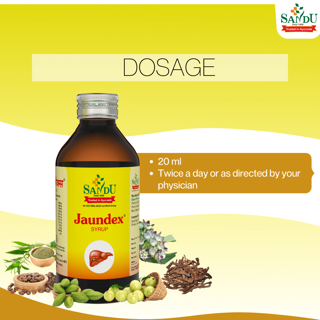 Jaundex Dosage: 2 teaspoons (10 ml) 2-3 times a day before a meal or as directed by a Physician.