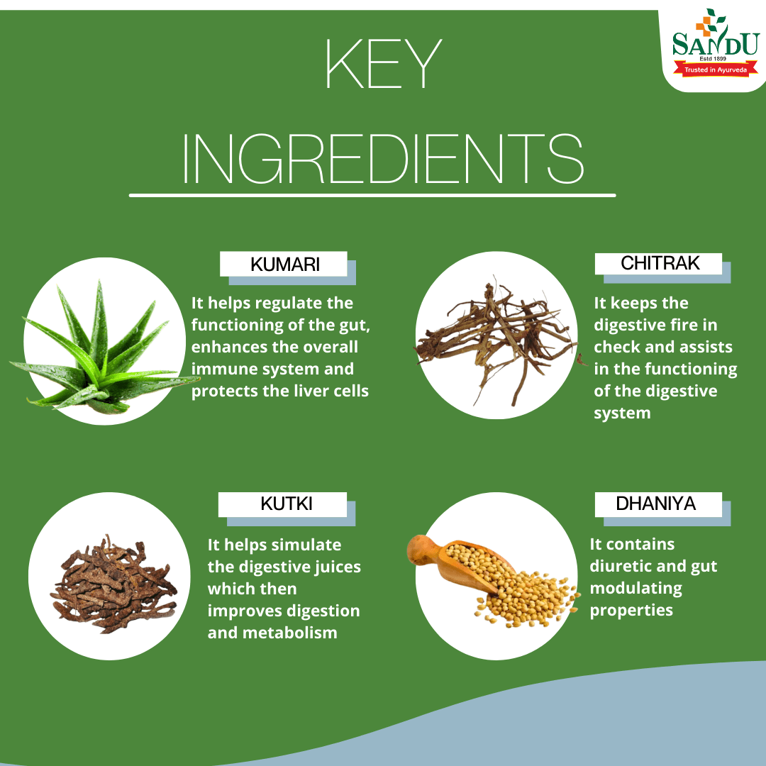 Sandu Kumari Asav No.1 Ayurvedic formulation has many benefits. It helps to correct indigestion and improves the functioning of the digestive system. Supportive in constipation variants like Irritable Bowel Syndrome (IBS).