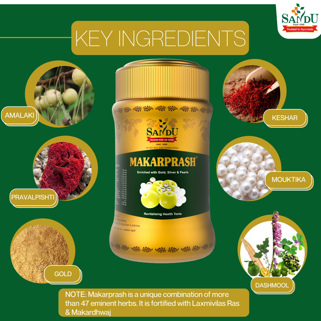 - Sandu Makarprash is a special Ayurvedic revitalizing health tonic for the entire family