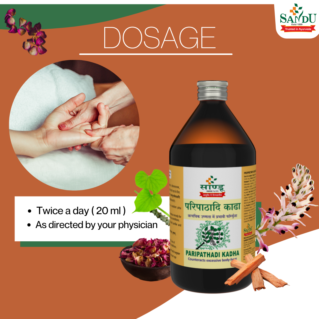Sandu Paripathadi Kadha is best for skin with skin eruptions. It is a trusted formula for burning sensations in many conditions. It reduces Pitta and gives a cooling effect to the body.