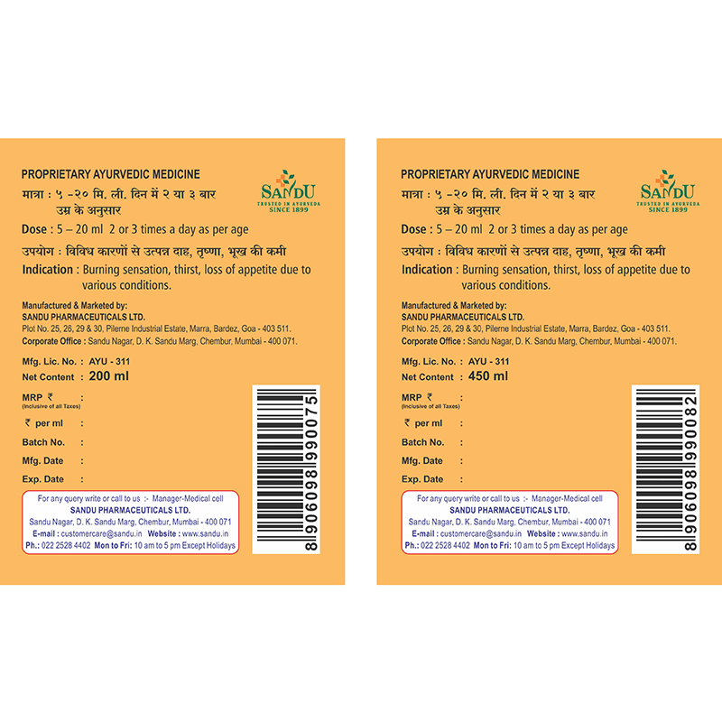 Directions: In children- 1 to 2 teaspoons (5 to 10 ml) 2 times a day, adults- 4 teaspoons (20 ml) 2 times a day with equal quantity of lukewarm water after a meal or as directed by Physician.