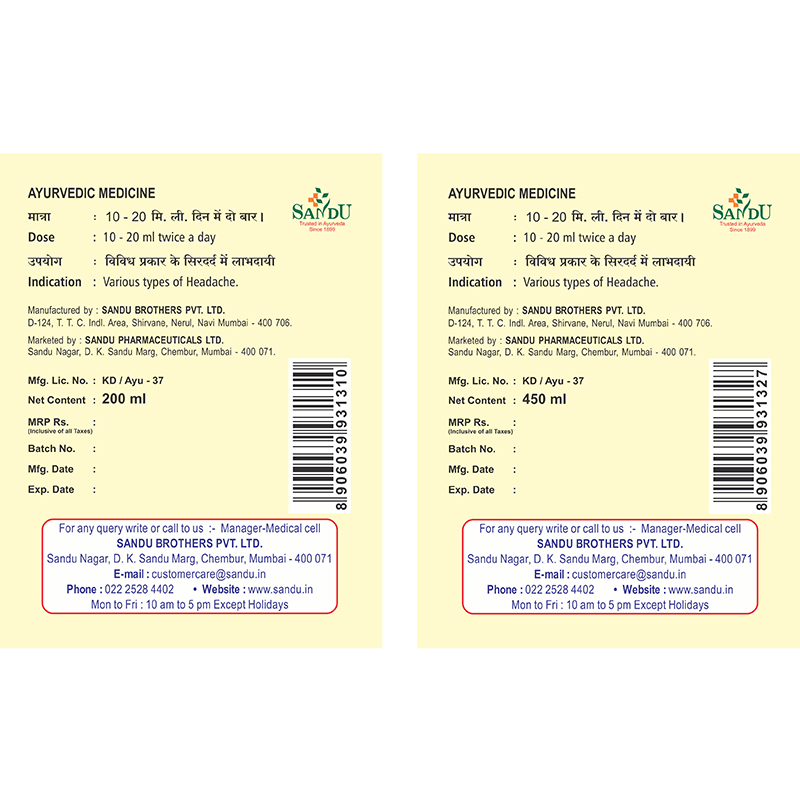 Pathyadi Kadha is a unique polyherbal formulation which is effective in treating various types of headaches. It has pitta pacifying herbs such as Triphala, Guduchi and Chirayata which help expel Pitta from the body. It clears various migraines over a period of time. It is beneficial for headaches caused by pitta dominance, sinusitis-induced headache, eyestrain and vision disturbances. The classical formula of Pathyadi Kadha is one of the most trusted and preferred formulas by Ayurvedic Vaidyas for all types of headaches.