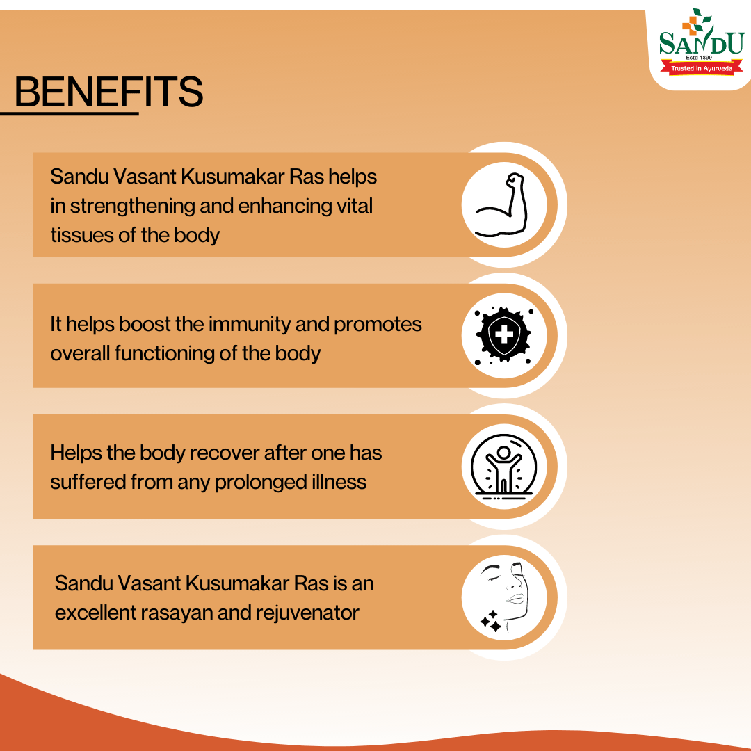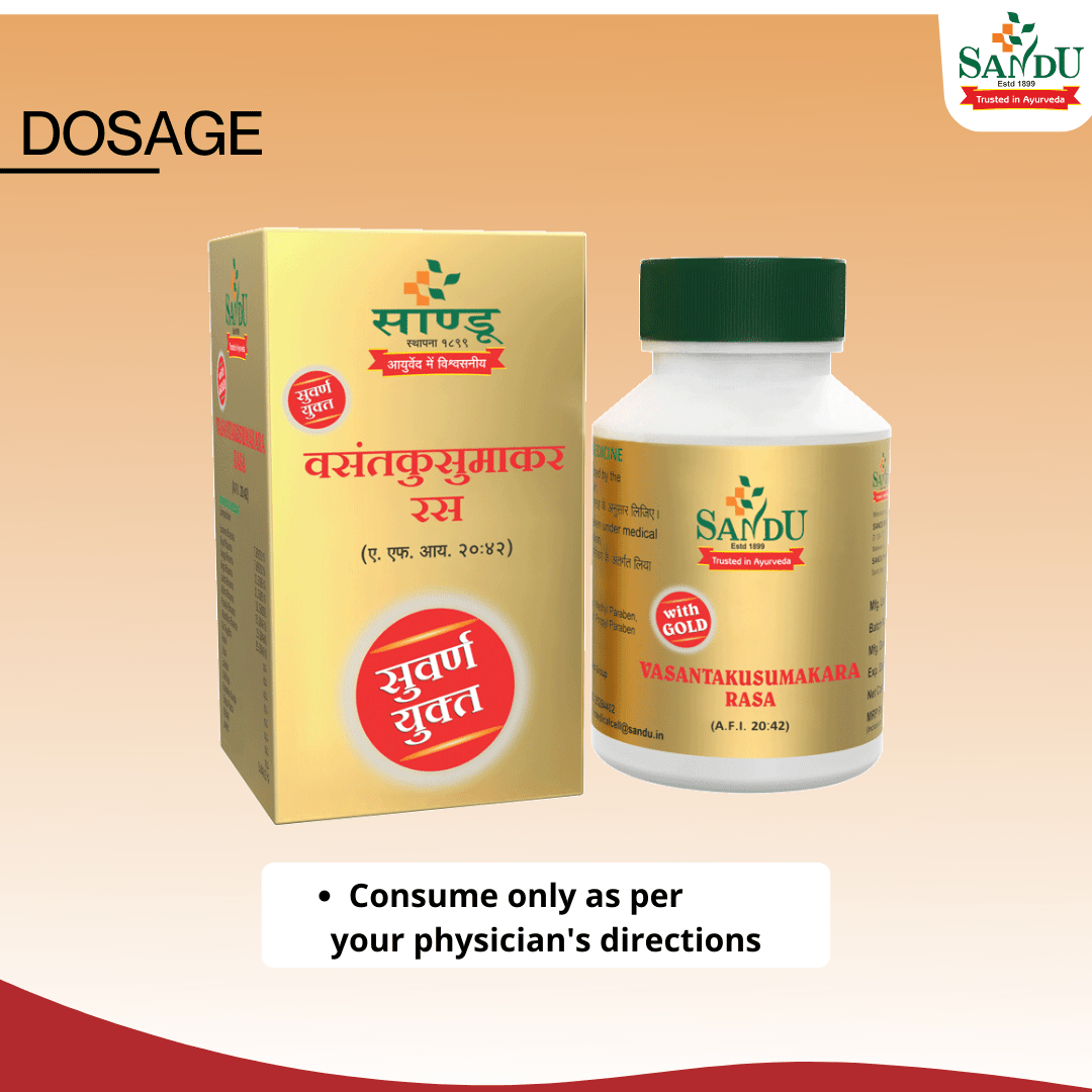 Vasant Kusumakar Rasa Dosage: 1-2 tablets twice a day or as directed by the Physician.